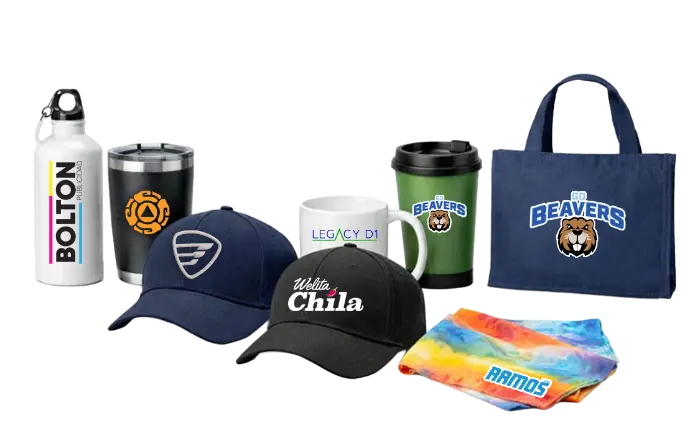 Vasos, termos, gorras y merch personalizado ideal para empresas, eventos y campañas publicitarias.